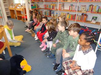 Die Dino-Kinder der Kita Purzelbaum fuhren vor kurzem nach Echzell in die Gemeindebücherei.