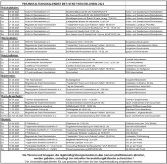VERANSTALTUNGSKALENDER DER STADT REICHELSHEIM 2025