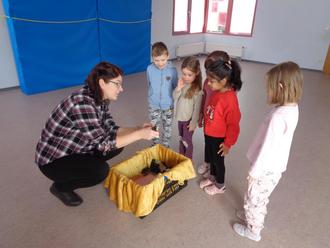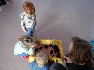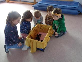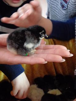Am letzten Tag, bevor die Küken wieder den Heimweg antraten, wurden diese aus dem Brutkasten geholt und die Kinder durften nacheinander die Küken bestaunen und streicheln.