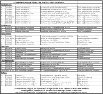 VERANSTALTUNGSKALENDER DER STADT REICHELSHEIM 2025