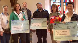 Im Rahmen eines Gottesdienstes am Sonntag 'Jubilate' konnte Pfarrerin Ursula Seeger in der Heuchelheimer Kirche neben den Mitgliedern des Freundeskreis Christkindlmarkt auch Vertreterinnen und Vertreter des Reichelsheimer Ortsverbandes im Deutschen Roten Kreuz (DRK), der Johanniter Unfallhilfe und des Haus 'Atemzeit' in Wölfersheim begrüßen.