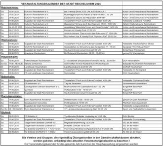 VERANSTALTUNGSKALENDER DER STADT REICHELSHEIM 2025