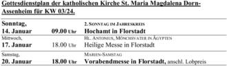 | 18.00 Uhr | Vorabendmesse in Florstadt, anschl. Lobpreis |