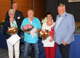 Für 25-jährige Mitgliedschaft wurden von Bernhard Weiser und Lothar Appel geehrt: Loni Zorn, Margit Muntetschinger und Kurt Kraus.