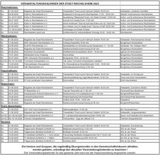 VERANSTALTUNGSKALENDER DER STADT REICHELSHEIM 2025