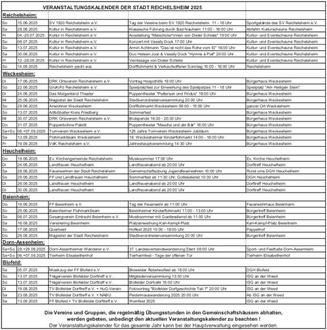 VERANSTALTUNGSKALENDER DER STADT REICHELSHEIM 2025