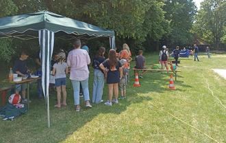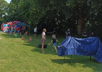 Für die kleinen Besucher standen neben einer Feuerwehr-Hüpfburg auch Spiele mit der Jugendfeuerwehr bereit. Dies sorgten ganz nebenbei noch für eine angenehme Abkühlung.