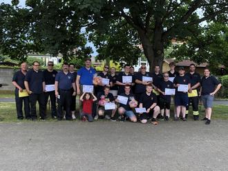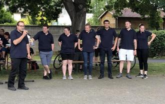 Das nächste Highlight ließ nicht lange auf sich warten: die Siegerehrung der Koordinatenfahrt. Wehrführer Sascha Lemp und Vorsitzender Yanic Philippi verkündeten gemeinsam die Platzierungen: Platz 3 belegte mit 334 Punkten die Feuerwehr Florstadt I. Den ersten und den zweiten Platz machten die Feuerwehren aus der eigenen Stadt unter sich aus: mit nur drei Punkten Vorsprung konnte die Feuerwehr Heuchelheim den Ersten Platz erringen vor der Feuerwehr Reichelsheim (356 Punkte). Die drei Siegermannschaften erhielten je einen Fresskorb.