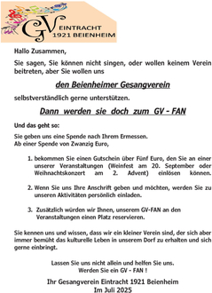 Mit uns, dem GV 1921 Beienheim, den New Tones aus Dorheim, mit großartigen Solisten aus beiden Chören, Willi Schilling, den Late Nights Singers und mehr.