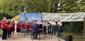 Der Gesangverein Eintracht 1921 Beienheim entführte am 6. Juli mit seinem traditionellen Musiksommer dieses Jahr nach New York. Unter dem weit ausladenden und schattigen Lindendach konnten die Gäste sich in die aufregende und beliebte amerikanische Metropole entführen lassen. Nach den vorausgegangenen besonders heißen Sommertagen bot sich der kühle Platz am Bürgertreff hervorragend an. Die paar Tropfen, die uns Petrus schickte, lockten zwar einige vorübergehend in den trockenen Bürgertreff, konnten aber die fröhliche Laune aller nicht trüben!