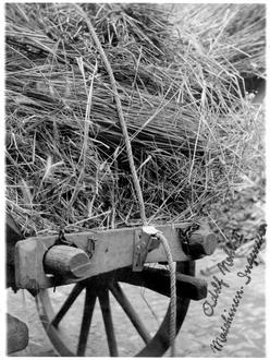 Nach dem Beladen des Leiterwagens mit Getreide oder Heu wurde die meist hoch gestapelte Ladung in aller Regel mit einem Seil oder auch mit einer an einem Seil befestigten Stange - dem sogenannten Heubaum - gesichert, indem man das Seil bzw. den Heubaum straff spannte und mit einer wieder leicht lösbaren Schlinge irgendwo am Wagen befestigte.