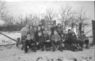 Schlittenfahren 1956 am „Reuße Bergelche“