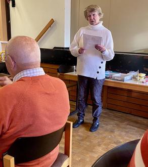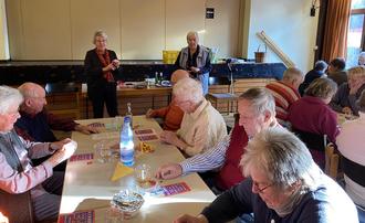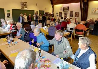 Im Text war der neue Metzger Daniel vertreten, welcher wie sein Vorgänger ein schmackhaftes Schlachtessen mit Rippchen, Leber- und Blutwürstchen und natürlich Sauerkraut inklusive Meerrettich als Beilage pünktlich um 11:30 Uhr anlieferte. Brot und Salzkartoffel, die das Team schon am Vortag geschält hatte, gehörten selbstverständlich auch dazu. Abschließend wurde Feuerwasser nach Wahl zur Verdauung gereicht. Pünktlich zum Essen war auch unser Musiker Volkhard Södler mit seinem Akkordeon erschienen um die anschließend kleiner werdenden Äuglein zu vertreiben. Als erstes wurde das „Beienheim-Lied“ schon mal zur Vorbereitung der kommenden närrischen Tage geübt und gesungen. Nach weiteren Gassenhauern aus sechzig Kehlen wurde anschließend ein paar Runden Bingo gespielt. Christine Leppin`s amüsanter Vortrag über eine Steinsuppe leitete zu einer weiteren Stärkung mit Blechkuchen und frischem Kaffee an diesem Tag ein. Vor dem Heimgehen war bei Allen eine Vorfreude auf den bevorstehenden Seniorenfastnacht-Mittwoch am 07. Februar um 14:11 Uhr zu spüren - vorher ist aber noch ein Spielemittag am 24. Januar ab 14 Uhr anberaumt.