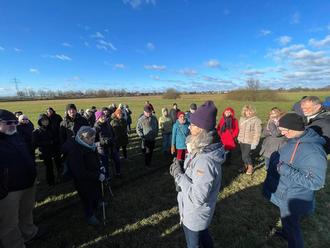 Bei bestem Wetter veranstaltete die NABU-Gruppe Bingenheim am Sonntag, dem 12.1., ihre traditionelle Winterwanderung. Norbert Fleischer konnte über 100 naturbegeisterte Teilnehmer begrüßen und übergab dann das Wort an Veronika Pigorsch, die die Wanderung leitete. Die Strecke verlief zunächst entlang des Horloff-Flutgrabens von Bingenheim nach Echzell durch das dort liegende FFH-Gebiet. Veronika Pigorsch erläuterte dabei die Entstehung der Kopfweiden, die den Gewässerrand säumen, und ihre Nützlichkeit für den Mensch als Rohstofflieferant für Ruten zum Herstellen von Körben und für die Tiere als Lebensraum.