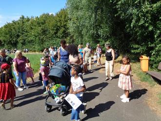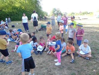 Am Freitag, den 14. Juli 2023, trafen sich alle Kita-Kinder, ihre Familien sowie das Kita-Team der Kita Purzelbaum aus Beienheim am Parkplatz des Wölfersheimer Sees.