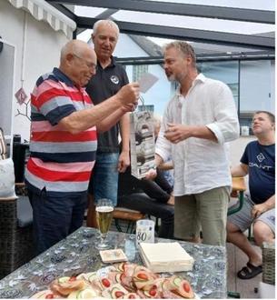 Zur Feier des Tages überreichten wir Günter natürlich auch ein Präsent als Zeichen unserer Wertschätzung und Dankbarkeit. Vor Ort gratulierten unter anderem unser 1. Vorsitzender Peter Römer, Soma-Leiter Gerald Naffin sowie viele weitere Weggefährten und Freunde.