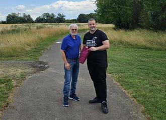 Im Rahmen der jährlichen Mitgliederversammlung des Fördervereins der Wölfersheimer Schulen wurde Sebastian Göbel nach 13-jähriger aktiver Mitarbeit aus dem Vorstand verabschiedet. Der 1. Vorsitzende Thomas Gerlach würdigte sein Ausscheiden mit Dankesworten und einem kleinen Geschenk. S. Göbel bleibt dem Förderverein selbstverständlich als Mitglied erhalten, im Rahmen seiner beruflichen Tätigkeit als Kulturbeauftragter der Gemeinde Wölfersheim findet er keine Zeit mehr für aktive Vorstandsarbeit innerhalb eines großen Vereins. Thomas Gerlach nahm die persönliche Verabschiedung während der Vorbereitung der Veranstaltungsreihe „Sommer am See“ am Wölfersheimer See vor.