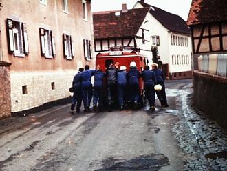 Die Arbeit der Feuerwehr bestand natürlich aus vielfältigen Übungen zum Erhalt der Einsatzbereitschaft und zur Pflege der Ausrüstung.