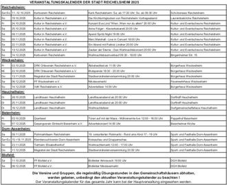 VERANSTALTUNGSKALENDER DER STADT REICHELSHEIM 2025