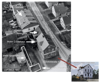 Auf dem beigefügtem Luftbild ist das komplette Anwesen zu sehen. Das vordere Gast- und Wohnhaus wurde 1896 durch den gebürtigen Beienheimer Bäcker und Gastwirt Christian Philip Raab und seiner zweiten, aus Baden stammenden 30 Jahre jüngeren Frau Johanna geb. Burkard erbaut.