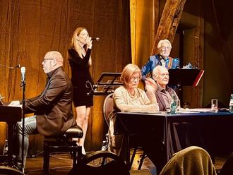 Gerd Wächter war als Zuschauer im Publikum, er hat sich mittlerweile von der Veranstaltung zurückgezogen. An der Seite von Herbert Meyer sitzt seither Inge Lapp, die mit viel Witz und Esprit auf der Lesebühne agiert. Musikalisch wurde die Lesung von den Wölfersheimer Musikern Bettina Skottke, Gerry Reutzel und Thomas Gerlach umrahmt, die von Hannes Wader über Peter Maffey bis hin zu Roland Kaiser ein sehr passendes und abwechslungsreiches Repertoire zum Besten gaben.
