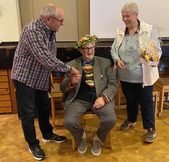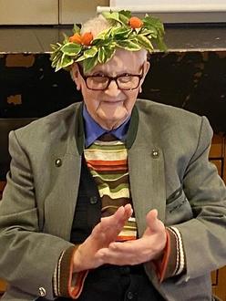 Allen schmeckte es und die Spannung wuchs hinsichtlich der im Voraus angekündigten Wahl zur diesjährigen königlichen Hoheit. Wird es eine Frau oder gar ein in diesem Seniorenkreise unterzähliger Mann - und welche Art Hoheit wird es werden? Mit gereimten Versen bereitete Rainer Rosenbecker alle auf die Person vor und man wusste dann auch gleich, dass es mit der Zwiebel was sein würde. Das Seniorenteam hatte sich für einen König entschieden und als Rainer die Adjektive - ein Mann, älteste Person hier im Raum sowie älteste Person von Beienheim bekannt gab, wusste ER sofort selbst und ALLE im Raum, dass ERICH EICH der ZWIEBELKÖNIG 2022 war. Seine Untertanen huldigten ihm spontan und seine Krönung konnte durch Ingelore und Rainer beginnen.