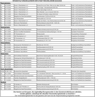 VERANSTALTUNGSKALENDER DER STADT REICHELSHEIM 2025/2026