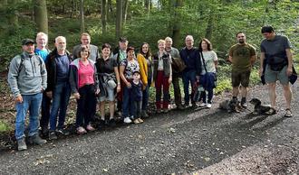 Ein thematischer Schwerpunkt waren die Herausforderungen des Klimawandels. Einerseits ist der Wald ein wichtiger Akteur gegen den Klimawandel, gleichzeitig leidet er stark darunter. „Der Klimawandel ist angekommen und spürbar. Global gesehen war der Juni 2023 der wärmste Juni seit Aufzeichnungsbeginn. Im Wald spürt man das an der sehr schwachen Zuwachsleistung vor allem älterer Waldbestände. Hinzu kommen Schadorganismen wie der Tannenborkenkäfer sowie der Rüsselkäfer, die uns neben der Trockenheit dieses Jahr die Begründung und Pflege von Waldbeständen erschweren“, erläuterte Revierförsterin Liebelt anhand konkreter Beispiele: Hauptschadorganismen sind (Fichten-)Borkenkäfer (Rüsselkäfer nur in Neuanpflanzungen von Nadelholz), wärmeliebende Pilze (ruft z. B. die Rußrindenkrankheit am Bergahorn hervor) und Insekten, die bei Eichen und Buchen zu Komplexerkrankungen führen (der Krummzähnige Tannenborkenkäfer ist neu und entsprechend nur an Tanne zu finden, die wir im Reichelsheimer Wald aber nicht haben)
