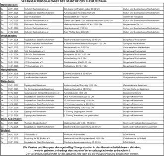 VERANSTALTUNGSKALENDER DER STADT REICHELSHEIM 2025/2026