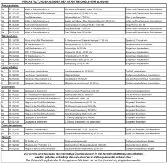 VERANSTALTUNGSKALENDER DER STADT REICHELSHEIM 2025/2026