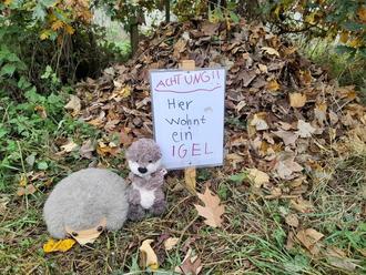 Überall ist noch wertvolles Laub zu finden, die Tiere lieben es. Deshalb mögen viele von ihnen keinen aufgeräumten Garten. Mit vielen kleinen Helfern unserer Waldgruppe suchten wir an vielen Stellen im Feld das Laub zusammen, denn es sollte heute ein Zuhause für Igel entstehen, ein Winterzuhause. Ein Kuscheltierigel namens Igor begleitete uns an diesem Vormittag, er erzählte den Kindern sehr viel über Igel und er wusste wirklich allerhand.