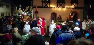Endlich ist es so weit! Alles ist geregelt! Um 17 Uhr am Nikolausabend startet die Kutsche. Mehr als 20 Kinder warten schon sehnsüchtig an der ersten Haltestelle in der Neugasse. Gut gelaunt entsteigt der Nikolaus der Kutsche und setzt sich auf einen kleinen Schemel, denn er meint, zum einen sei er nicht mehr der Jüngste und zum anderen könne er so den Kindern auf Augenhöhe begegnen. Das funktioniert! Im Gespräch mit ihm verlieren sie ihre Scheu, nehmen strahlend ihr Päckchen in Empfang und bringen das eine oder andere Gedicht zu Gehör oder haben ein Bild gemalt. Wie üblich klappt das vom Nikolaus gewünschte gemeinsam gesungene Lied mehr oder weniger gut. Der Nikolaus mit seinem Begleittross lässt sich davon nicht verdrießen, zumal sich alle mit dargereichtem Schmalzebrot und Getränken stärken können. Was für eine schöne Geste!