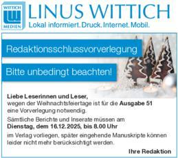 Redaktionsschlussvorverlegung Weihnachten 2025