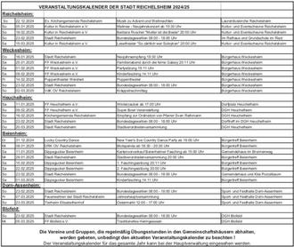 VERANSTALTUNGSKALENDER DER STADT REICHELSHEIM 2024/25