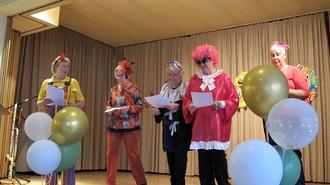 Trotz des lausigen Wetters erlebten die vielen Besucher im fastnachtlichen, farbenfrohgeschmückten Saal des Gemeindehauses der ev. Kirchengemeinden Beienheim/Weckesheim eine fulminante Faschingssitzung. Mit dem Text „Ja, ja so sind wir Alten... zu der Melodie einer alten Volksweise zog das SeniorenTeam durch die Narrhalla zur Bühne. Begrüßung und Glückwünsche an alle Jubilare erfolgte natürlich büttengerecht in Reimform durch Annerose Blasius und Christine Hachenburger. Inzwischen war der Kaffee durchgelaufen und man freute sich auf das obligatorische Kräppelessen. Die nun frohgelaunte Gesellschaft nutzte diese Gelegenheit ortsbetreffende Neuigkeiten auszutauschen und danach erwartete man voller Spannung den Einzug des Tanzmariechens Pauline Schreitz, die mit ihrem akrobatischen Tanz beeindruckte. Zu einer Faschingssitzung gehören natürlich Sketche und lustige Vorträge. Hier starteten Annerose und Christine H. als „alte“ Schulkameradinnen, die sich trafen, um aus ihren mehr oder weniger ereignisreichem und aufregendem Leben zu erzählen. Der Beifall nach jedem Gag und dem Tusch war ihnen gewiss. Passend zu Bowle und anderen geistigen Getränken, brachte Bernhard Philippi mit seiner tollen Stimme und seinem dargebotenen Heino-Potpourri den Saal zum mitschmettern. Die fällige Zugabe als Elvis mit dem Song „It’s now or never“ passte ja schließlich gut zum heutigen Ereignis. „Wo Alte feiern Karneval gehört auch Jugend mit in Saal“ - so kündigte Moderatorin Christine Leppin anschließend die Tanzgarde des Kindergartens Beienheim an. Gut einstudiert durch Carina Treusch zeigten schon die Allerkleinsten den „Allergrößten“ wie man mit gymnastischen Übungen sich fit hält. Eine Riesenfreude für die Zugucker, die beim Hüpfen, Springen und Singen außer Puste kamen. Die kleinen Akteure hätten selbst nach der Zugabe noch gerne weiter gemacht. Christine Hachenburger bot nun noch einen lustigen und köstlichen Vortrag mit dem Thema Sauerkrautmissgeschick an. Hierbei ersetzt die Köchin das vergessene Sauerkraut durch Lametta. Hierfür erntete sie viele Lachsalven. Der letzte Programmpunkt wurde folgendermaßen angekündigt: „Die mordenden Witwen sind wieder zurück-doch dieses Jahr viel friedlicher, welch ein Glück! Unsere Beienheimer weibliche Fastnachtsgruppe „Füllerlücken“ stand am Wasser des großen Schwabenmeeres. Ein bekanntes Volkslied wo ein Schwan mit Kahn, eine Fischerin mit kleinen Fischlein und großen Hechten sowie mit Fröschen und Nixen der Angelpunkt ist, wurde lautstark vom närrischen Volk mitgesungen und beklatscht. Nach deren Zugabe hatten die Stimmbänder noch keine Pause - der echte Abschluss war die „Beienheimer Hymne“! Dank allen Beteiligten auf, vor und hinter der Bühne - speziell unserem Musiker und Allrounder Volkhard Södler. Er begleitete die Vorträge mit den passenden Musikstücken und sang Stimmungs- und Schunkellieder in den Pausen und Übergängen.