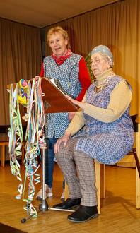 Danach ging die Post ab! Acht Teammitglieder führten das Märchen vom Aschenputtel und dem wunderschönen Prinzen in einer kurzen und modernen Version auf. „Okay“ Eine Überraschung kündigte sich lautstark aus Södel an. Die Hildegard, dargestellt von Silvia Mück, wollte unbedingt die Seniorenfastnacht bei uns feiern, doch das Auto streikte. Kurz entschlossen trampte sie nach Beienheim um ihre Erlebnisse mit vielem Drumherum auf der Bühne zum Besten zu geben. Zwei ältere Damen, die Frau Posposchil und die Frau Hawlischek trafen sich hier auch zu einem Plausch über Gesundheitsfragen auf diesem närrischen Podium. Viel Beifall erhielten Irene Reif und Christine Hachenburger hierfür. Annerose Blasius mit ihrer Schwester Ingelore Schudt unterhielten sich über Blumenarten für einen Anlass - übrig blieb dann der Kaktus! Zum Abschluss, oh wie schön, traten wiederholt die „Füllerlücken“ auf. Diese Damentruppe, aus der Beienheimer Fastnacht nicht mehr wegzudenken, brachte ihre aktuelle Nummer: „Witwen - die wieder mal zu haben sind“.