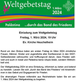 | 18:00 Uhr | Gottesdienst zum Weltgebetstag in Dauernheim |