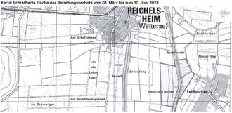 Auch dieses Jahr hat der Kreisausschuss des Wetteraukreises eine Schutzanordnung zum Schutz von Weißstorch, Bekassine, Kiebitz, Graugans, Knäkente, Reiherente und Zwergtaucher in den Gemarkungsbereichen „Hinter den Hütten“ und „Nachtweide“ erlassen.