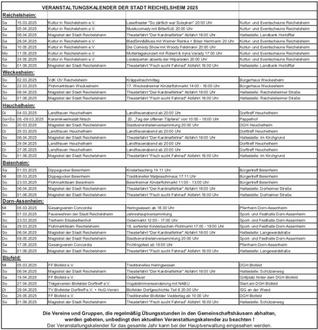 VERANSTALTUNGSKALENDER DER STADT REICHELSHEIM 2025