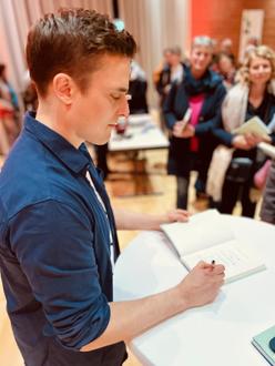 Das Publikum applaudierte begeistert. Anschließend trugen sich Constantin Schreiber und Martin Guth in das Goldene Buch der Stadt ein und Schreiber signierte zum Abschluss noch einige seiner Bücher.