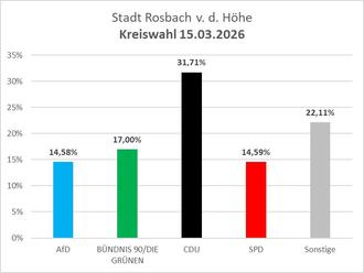 Für die Kreiswahl ergeben sich aus den Wahlbezirken in Rosbach v. d. Höhe folgende Ergebnisse für die Kreiswahl:
