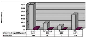 Die folgenden Darstellungen basieren auf den Zahlen der Krankenstatistik 2023 (Zeitraum 01.01.2023 – 31.12.2023) für die Bereiche Verwaltung, Bauhof, Sozial- und Erziehungsdienst.