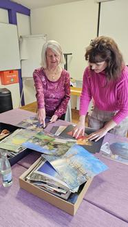 Ein großes Versäumnis, denn die wenigen Teilnehmenden waren begeistert von der Anleitung der Kursleiterin Viktoria Meisinger. Mit Tipps und praktischen Anleitungen wurden aus diversen Quellen wie Zeitschriften, Kalendern und u.a.m. Collagenbilder erstellt, die sich sehen lassen konnten.