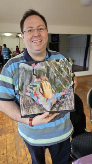 Viktoria Meisinger brachte es ohne belehrend zu wirken fertig, bei den Teilnehmern Spaß an der Collagetechnik zu entwickeln. Bei der Erstellung der Bilder stand sie beratend zur Seite.