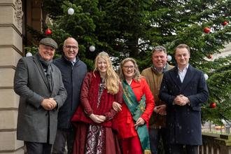 Der Weihnachtsbaum vor der Staatskanzlei läutet die Weihnachtszeit ein und setzt gleichzeitig ein wichtiges Zeichen für den Schutz und die nachhaltige Nutzung der Wälder in Hessen.