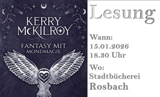 Am Donnerstag, dem 15. Januar 2026, liest die Rodheimer Autorin Kerry McKilroy um 18:30 Uhr in der Stadtbücherei Rosbach aus ihrem Debütroman „Vollmondkind – Vertrauen finden“.