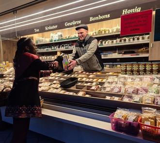 Mittlerweile ist dieser Besuch kurz vor den Feiertagen zu einer festen Tradition geworden. Der Rathauschef nutzt die Gelegenheit, um sich bei den Marktbeschickern für ihre kontinuierliche Arbeit, ihre hohe Qualität und ihren Beitrag zur Attraktivität der Stadt Rosbach zu bedanken. „Der Bauernmarkt ist aus unserem Stadtleben nicht mehr wegzudenken. Er lebt von den Menschen, die ihn mit viel Herzblut gestalten“, betonte Bürgermeister Maar. Blütenkönigin Joyce I. und Steffen Maar nutzten auch die Gelegenheit sich bei dem Marktmeister Norbert Schön und bei seiner Frau Christina Simon-Schön zu bedanken.