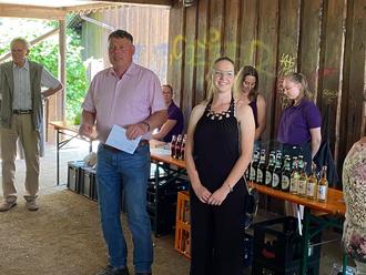 Bürgermeister Steffen Maar bedankte sich in seiner Begrüßungsrede zusammen mit Stadtverordnetenvorsteherin, Katharina Hantl, bei den fleißigen Helferinnen und Helfern in den lilafarbigen Schürzen.