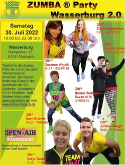 Zum zweiten Mal steigt die Zumba Open Air Party an der Wasserburg in Zusammenarbeit mit der Stadt Rosbach.
