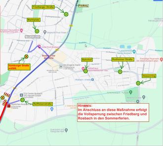 Im Anschluss daran ist der letzte Bauabschnitt zwischen Friedberg und Rosbach mit einer Vollsperrung ab dem 1. August 2024 geplant. Über den genauen Zeitpunkt des Wechsels wird rechtzeitig informiert.
